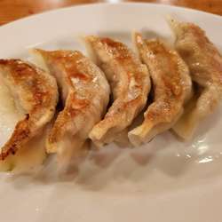 【注文】ゆでギョウザ(300円)。一緒にレモンサワーと豚の唐揚げを注文する。通常の(焼き)ギョウザより50円安い。また、この後に (焼き) ギョウザも注文する。